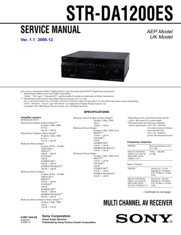 Presently you are looking regarding an Sony Str Da1200es Av Receiver Service Manual example that will we provide here within some form of document formats such as PDF, Doc, Power Point, and also images that will will make it simpler for you to create an Sony Str Da1200es Av Receiver Service Manual yourself. For a clearer look, you can open some examples below. All the illustrations about Sony Str Da1200es Av Receiver Service Manual on this web site, we get from many sources so you may create a better file of your own.